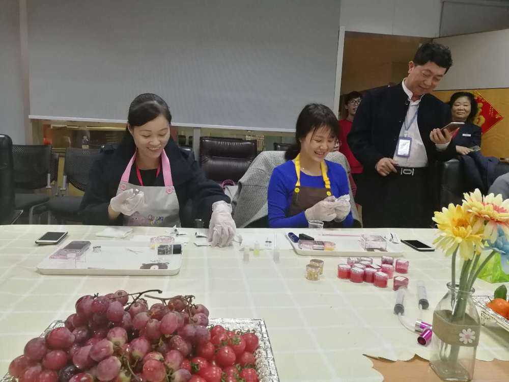 三月里的小雨淅沥淅沥下个不停,却浇不灭女性们过节的热情。正值一年一度“三·八妇女节”之际,大鸿森联合建行于3月7日下午在集团会议室一同举办了“唇绽如樱,女神巧手”的DIY口红活动,并且取得了圆满成功。出席活动的可爱佳人们,在建行鲜肉帅哥的细心指导下,经过一系列繁杂的工序(如选色、研磨、加热、倒模、冷冻、装管等),伴随着满室的欢声笑语,大鸿森和建行丽人们最终都制作出各自心仪的作品。
